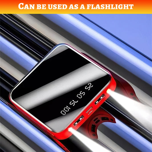 DFITO Mini Power Bank 20000mAh Dual USB Ports Mirror Screen Digital Display External Battery Pack Power Bank for Smart Cell Phone, Red