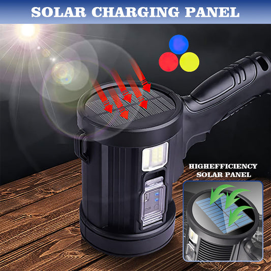DFITO Rechargeable Spotlight, 100000 Lumens Waterproof LED Searchlight Handheld, Solar Strong Light Flashlight with COB Light for Camping Hiking Fishing