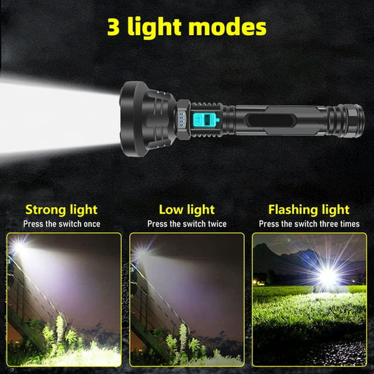 DFITO Rechargeable LED Flashlight 90000 Lumens Powerful Zoom Torch with Battery for Outdoor Camping