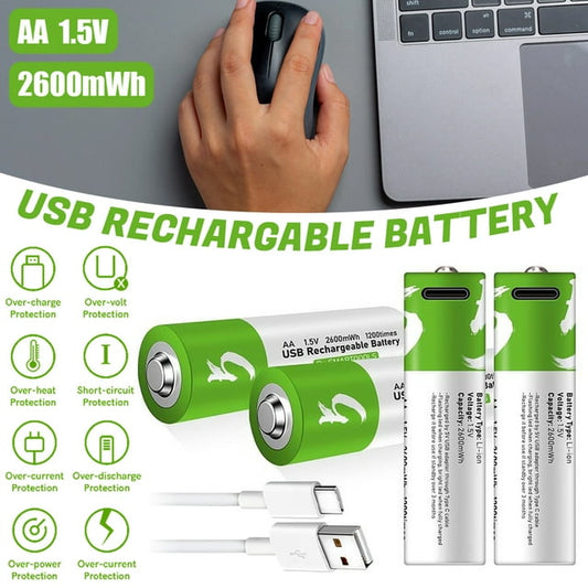 DFITO USB Rechargeable AA Battery, 1.5V / 2600mWh Rechargeable Lithium AA Batteries, Over 1200 Cycles, 1.5 Hours Fast Charging