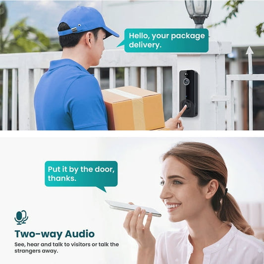 DFITO Wireless WiFi Video Doorbell, Two-Way Audio, Smart Home Security Camera Door Bell, Human PIR Motion Detection for iOS & Android Phone, Black