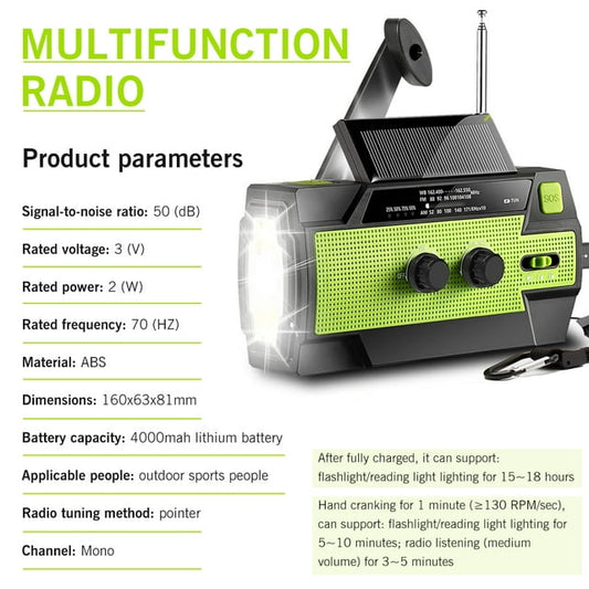 Emergency Radio with Cell Phone Charge, 4000mah-Solar Hand Crank, Portable Am/Fm/Noaa Weather Radio, with Flashlight and Reading Light