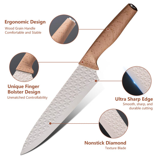 Kitchen Knife Set, 8-Pieces Sharp Non-Stick Coated Chef Knives Block Set