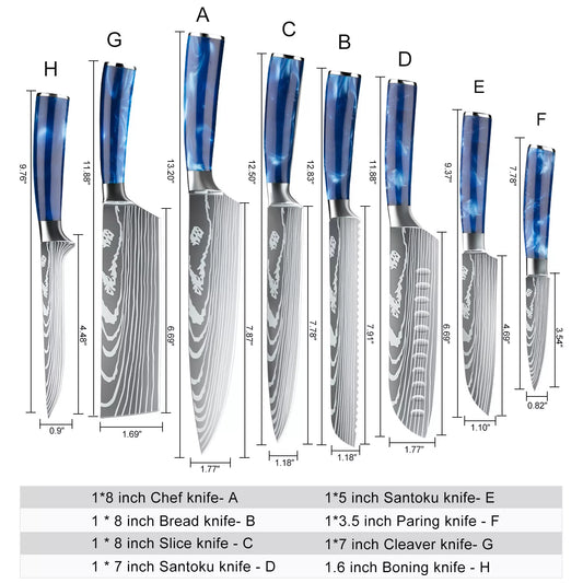 Kitchen Knife Set,DFITO 8 Pcs Professional Chef Kitchen Knife Set, Stainless Steel Cooking Knife Set, Blue