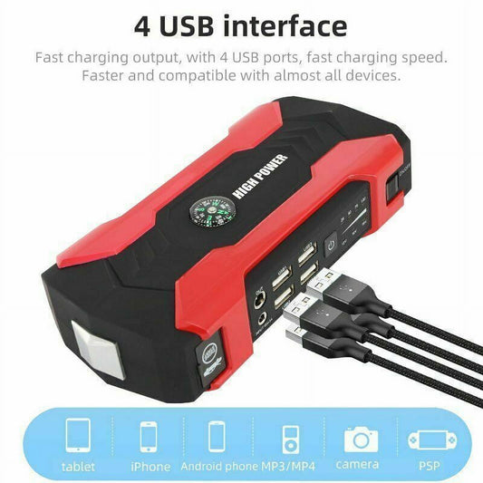 Multi-functional Car Battery Jump Starter 28000mAh Portable Charger Power Bank for Cell Phone, 4 USB Ports, LED Flashlight, Emergency 12V Auto Power Pack by DFITO