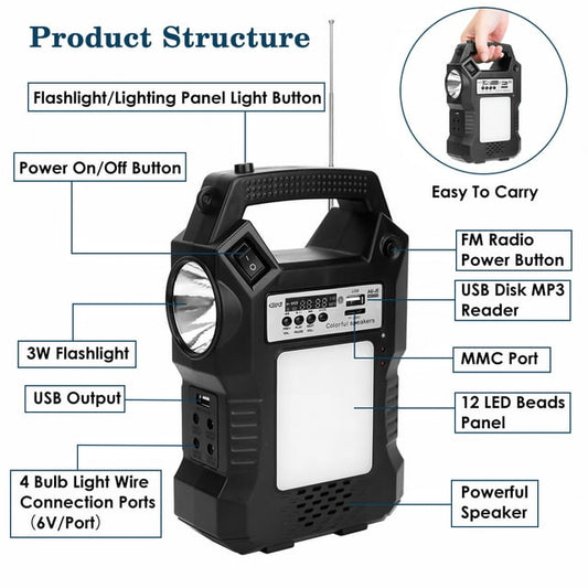 Portable Generator,DFITO 3600mAh Portable Power Station with Bulb, Solar Power Bank for Camping Outdoor Family Rv Emergency