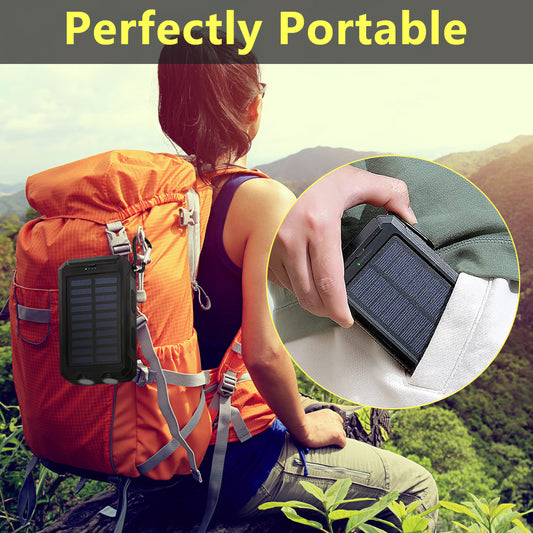 Solar Power Bank,DFITO Portable Charger 20000mAh External Battery Pack Type C Input Port Dual Flashlight, Compass, Solar Panel Charging (Black)