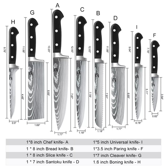 8 PCS Kitchen Knives Set Stainless Steel Japanese Damascus Pattern Chef's Knife