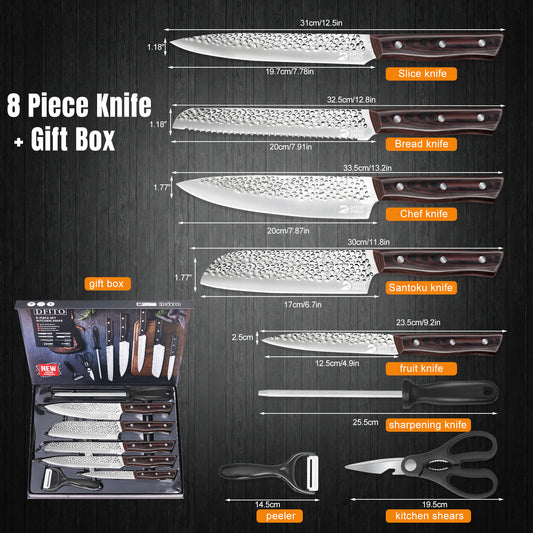Chef Knife Set,DFITO 8Pcs Stainless Steel Kitchen Knife Set, Chef Knife, Bread Knife, Slicing Knife, Utility Knife, Paring Knife, Knife Sharpener, Extra Sharp