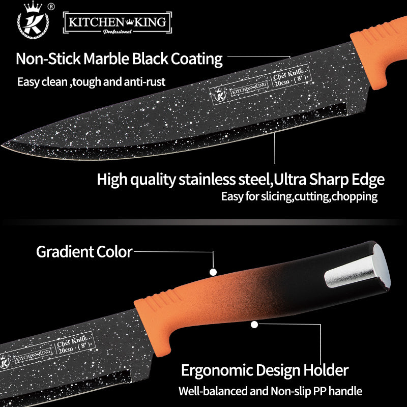 - 【Professional High Quality Chef Knife Set】Superior high-carbon German stainless steel blades for precision is sharp and sturdy with a thin edge that keeps food from sticking to the knife’s edge, maintaining its ultra-sharp edge for precise cuts. Honed for long-lasting sharpness, the fine-edge blades boast precision cutting. Please stay away from Children because it is very sharp.