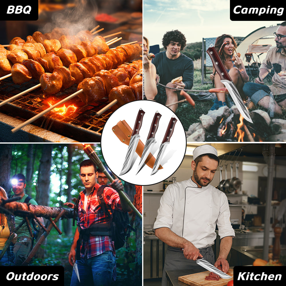3PCS Butcher Knife Set Hand Forged chef knife Boning Knife